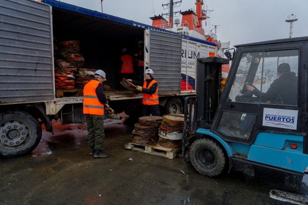La Dirección Provincial de Puertos (DPP) en conjunto con la Secretaría de Ambiente, recibieron en el Puerto de Ushuaia al rompehielos ARA Almirante Irízar, para realizar las operaciones habituales de descarga de residuos provenientes de la Antártida.