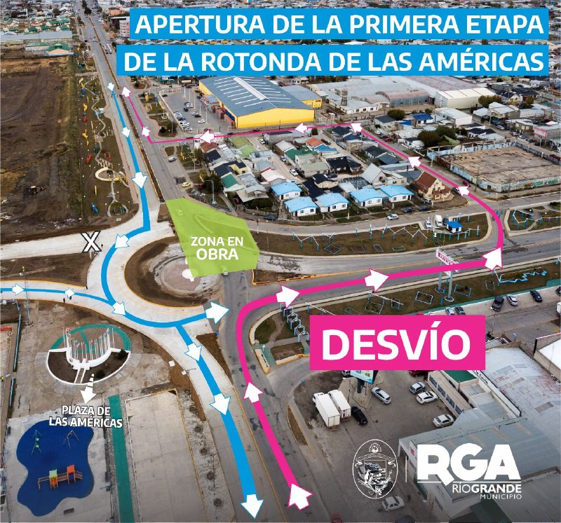 La Rotonda quedará habilitada en el tramo Centro- Chacra II. Es decir que, quienes transiten por Av. San Martín, desde Chacra II, podrán desviarse hacia la derecha, por Av. Perito Moreno y luego por calle Finocchio para retomar nuevamente por San Martín.