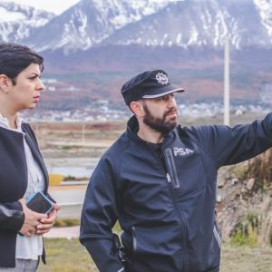 Ushuaia 24/04/2022.- La secretaria de Gobierno de la Municipalidad de Ushuaia, Yesica Garay, visitó las instalaciones de la Policía de Seguridad Aeroportuaria, acompañado por el jefe de la Delegación Ushuaia de la fuerza, Pablo Alonso.