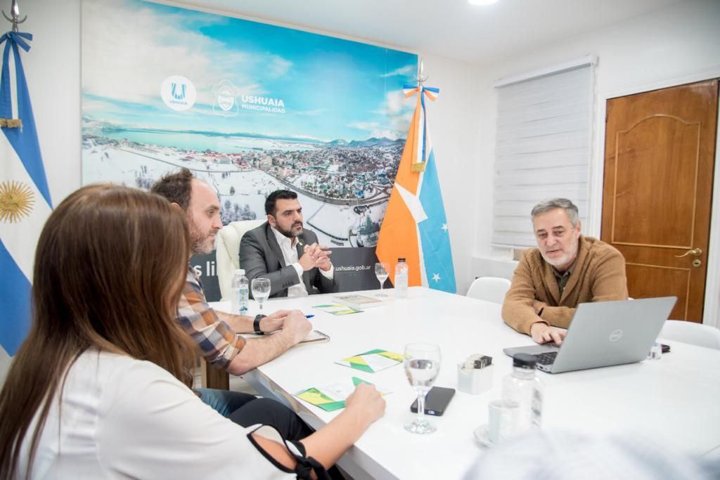 Ushuaia 18/04/2022.- El intendente de Ushuaia Walter Vuoto junto al secretario de Medio Ambiente y Desarrollo Sustentable Mauro Pérez Toscani, al secretario de Legal y Técnica César Molina Holguín y la coordinadora de Bienestar de Personal Gabriela Borré, recibieron al arq. Horacio M. Martino, quien está al frente de la Dirección de Asuntos Municipales (DAM) que depende de la Secretaría de Vinculación e Innovación Tecnológica de la Universidad Nacional de La Plata.