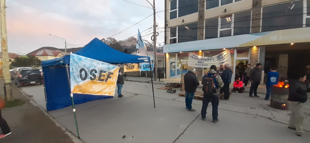 Desde anoche la organización gremial estatal tomó la sede la obra Social de Empleados Fueguinos OSEF, para hacer notar una cantidad de reclamos que tienen que ver con un proyecto del ejecutivo para elevar los aportes de los activos, la situacion financiera y otros temas que preocupan a los estatales.
