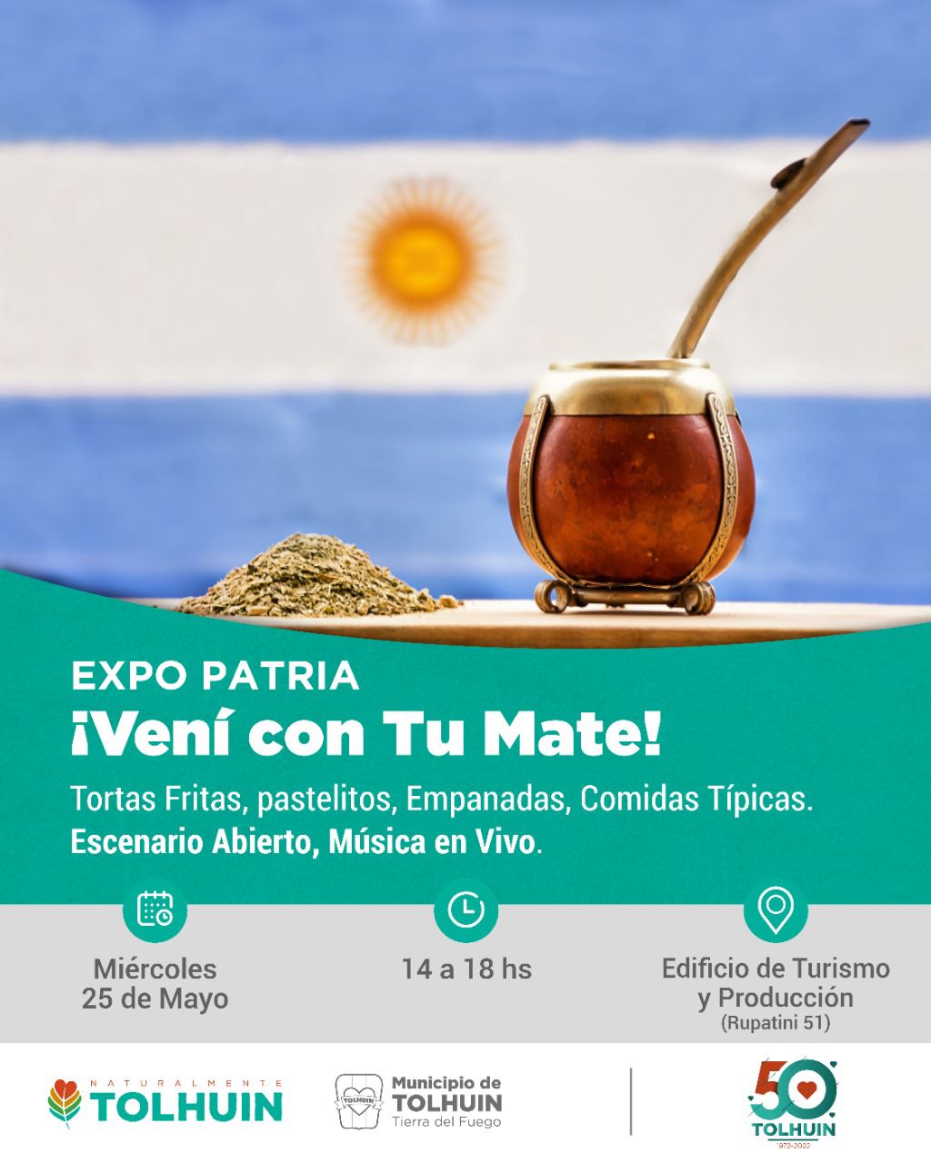 La “Expo Patria” se realizará el día miércoles 25 de mayo de 14:00 hs a 18:00 hs en el Edificio de Turismo y Producción, ubicado en Rupatini 51.Entre las propuestas habrá stands de productos artesanales y gastronómicos de nuestra ciudad, que pondrán a la venta comidas tradicionales de nuestro país como pastelitos, empanadas y tortas fritas.Además, durante el evento se podrá disfrutar de música en vivo y un escenario abierto, con presentaciones de diversos números musicales y bailes folklóricos.De esta forma, el Municipio convoca a todos los vecinos y vecinas a acercarse con su equipo de mate y disfrutar en comunidad de un evento de encuentro y celebración de la fiesta patria, en el 212º Aniversario de la Revolución de Mayo.