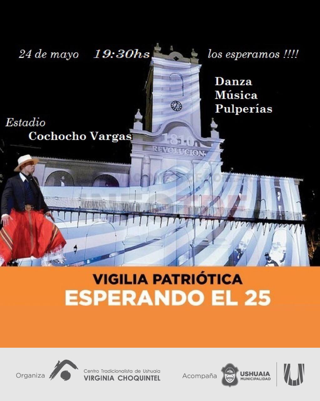 El evento se llevará adelante en el Estadio Cochocho Vargas LA MUNICIPALIDAD DE USHUAIA ACOMPAÑARÁ LA VIGILIA PATRIÓTICA DEL 25 DE MAYO