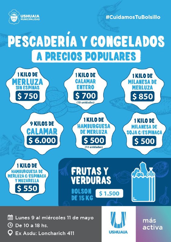 El mercado atenderá en ex ASDU, ubicado en la calle Loncharich 411 del barrio Andorra, en el horario de 10 a 18 horas. Allí, además de encontrar variedad de pescados y congelados a precios populares, también habrá bolsones de frutas y verduras de 15 kilogramos por 1500 pesos.