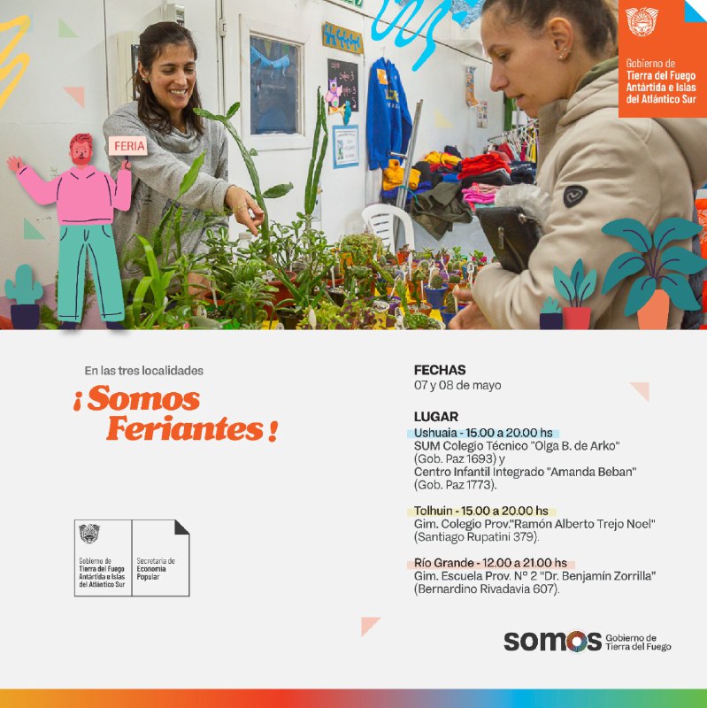 En la localidad de Ushuaia se realizará en el SUM del Colegio Técnico «Olga B. de Arko» cito en Gobernador Paz N° 1693 y simultáneamente en el Centro Infantil Integrado «Amanda Beban» ubicado en Gobernador Paz N° 1773 de 15 a 20 Hs. La misma contará con stands de venta de frutas, verduras, carnes y lácteos.