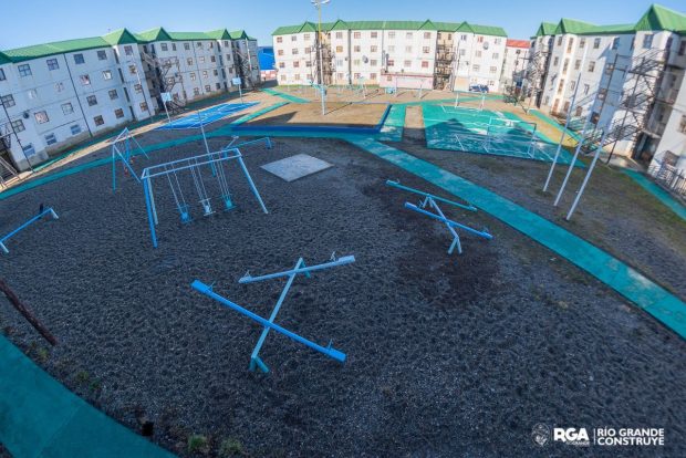 En este sentido, el Municipio puso en valor un nuevo espacio recreativo en el barrio Chacra II, patio interno, entre las calles San Martín, Prefectura Naval, Islas de los Estados y Pioneros Fueguinos.