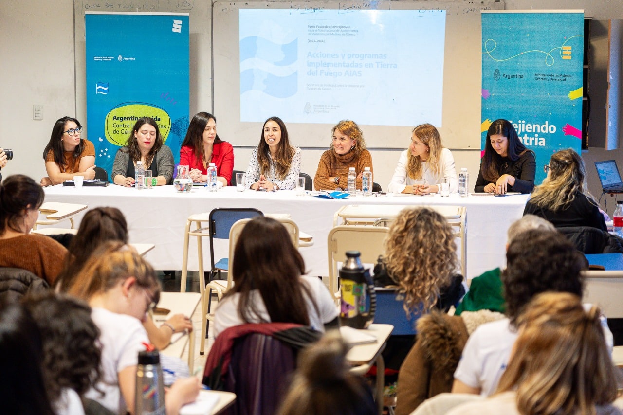 El Foro contó con un panel encabezado por la Secretaria de Niñez, Adolescencia y Familia Gabriela Moreyra; la Subsecretaria de Abordaje Integral de las Violencias por Razones de Género, Laurana Malacalza; y la Secretaria de la Mujer de la Municipalidad de Ushuaia a Natacha Aldalla.