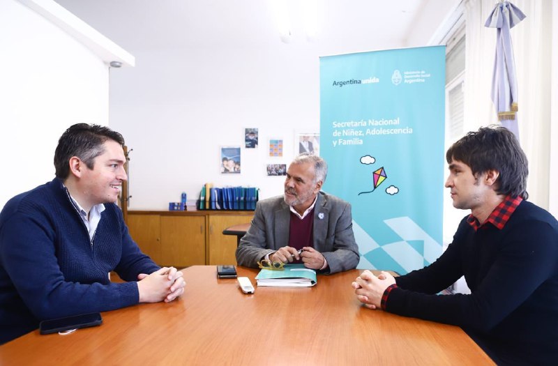 El intendente Martín Perez firmó la adhesión del Municipio de Río Grande al Plan Nacional de Primera Infancia, tras mantener una reunión de trabajo con el Secretario Nacional de Niñez, Adolescencia y Familia, Dr. Gabriel Lerner, y el Director Nacional de Primera Infancia, Germán Palladino.