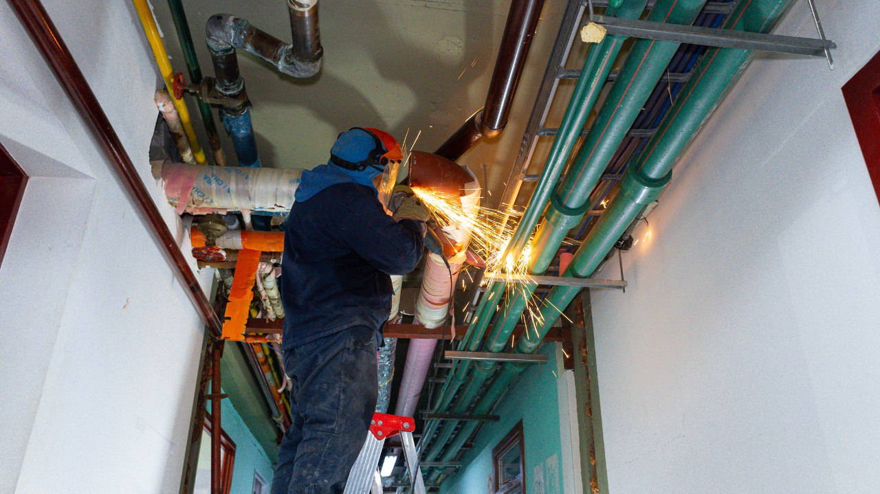Los trabajos de reemplazo del tramo del caño roto estarán llevándose adelante durante las próximas horas y una vez finalizados se estará restableciendo normalmente la calefacción. Se trata de un bypass en el el caño dañado.