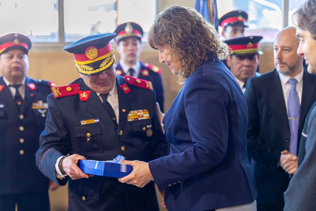 En la ceremonia estuvieron presentes, los Legisladores Provinciales, Federico Sciurano y Emmanuel Trentino; la Secretaria de Gobierno de la Municipalidad de Ushuaia, Yesica Garay; la Concejal de Ushuaia, Mariana Oviedo; el Presidente de la Federación de Asociaciones de Bomberos Voluntarios de Tierra del Fuego, Horacio Galego; el Presidente de la Asociación de Bomberos Voluntarios Ushuaia, José María Abdala y el Comandante General del Cuerpo de Bomberos Voluntarios, Carlos Arizmendi.