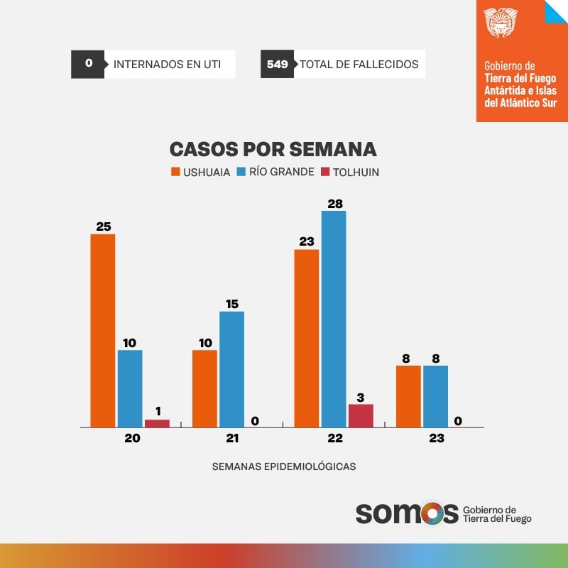 En este marco, el Ministerio de Salud de Tierra del Fuego AIAS actualizó el informe de situación en cuanto a la pandemia de Covid-19 en la provincia y su evolución correspondiente a la vigesimotercera semana epidemiológica de 2022.