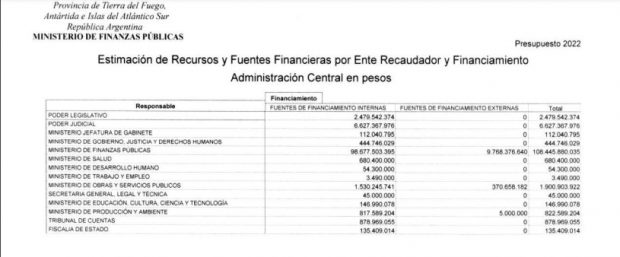 Proyecto de presupuesto presentado por el ejecutivo provincial.