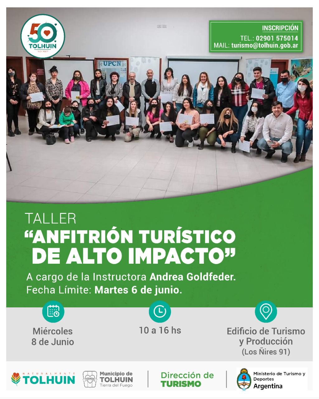 Será el día miércoles 8 de junio, en el Hall central del Edificio de la Secretaría de Turismo y Producción, de 10:00 hs a 16 hs.La capacitación brindará herramientas que permitan contribuir a la correcta atención al turista. Por su mirada integral, permitirá reflexionar junto a la comunidad local sobre la importancia de su rol en virtud de lograr la fidelidad de los turistas.El mismo esta destinado a las personas que se encuentran ligadas directa o indirectamente a la atención al turista: informantes, comerciantes, emprendedores, trabajadores y profesionales del turismo y la hotelería, docentes, prestadores turísticos del sector privado (alojamientos, gastronómicos, ocio, agencias de viaje), docentes de carreras afines al turismo, representantes de organizaciones y asociaciones.El curso posee cupos limitados, no tiene costo alguno y será dictado por la Instructora Andrea Goldfeder del Ministerio de Turismo y Deportes de la Nación.Aquellos prestadores interesados en participar deben inscribirse a través de la Dirección de Turismo, teléfono (02901) 575014, vía e-mail: turismo@tolhuin.gob.ar o acercarse a la oficina de Turismo en Av. Los Ñires 91 en el horario de lunes a viernes de 08:00 a 15:00 hs. Los fines de semana y feriados el horario de atención es de 10:00 a 17:00hs.