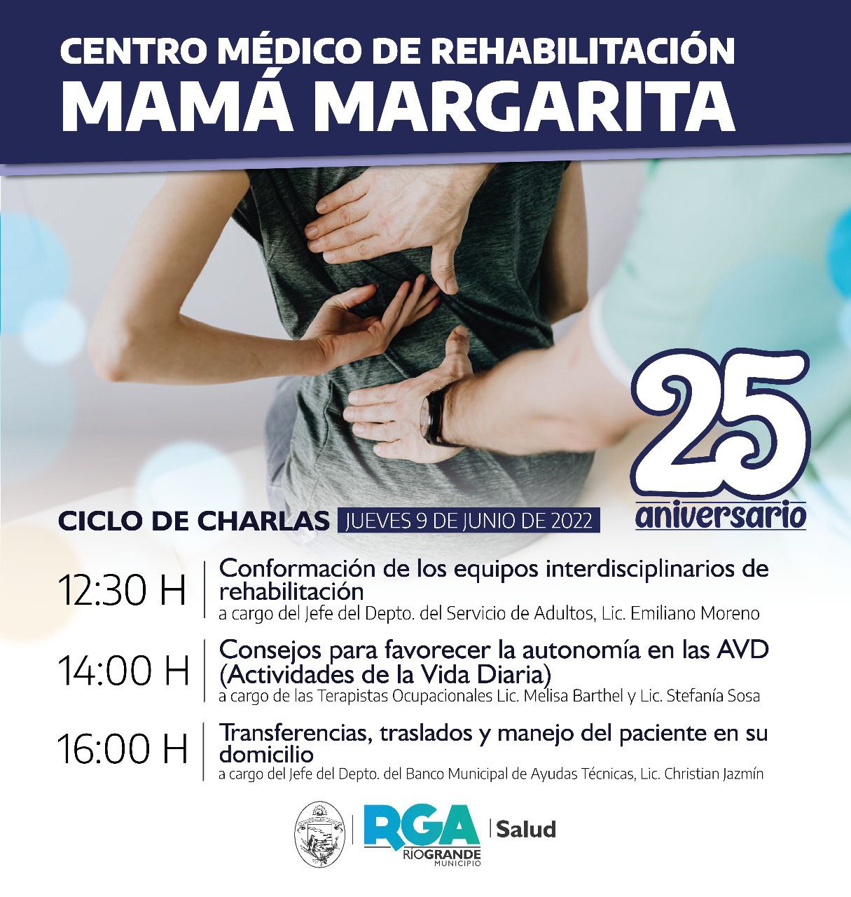 Este jueves 9 de junio el Centro de Rehabilitación “Mamá Margarita” cumple 25 años al servicio de los y las riograndenses. En ese marco, se ofrecerán diversas charlas abiertas a toda la comunidad, vinculadas a temáticas referidas a los procesos de rehabilitación.