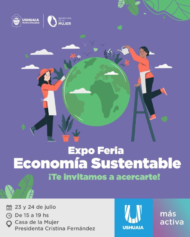 Ushuaia 22/07/2022.- La Municipalidad de Ushuaia invita a los vecinos y vecinas a participar de la Expo Feria Economía Sustentable, donde habrá una presentación de emprendimientos locales y charlas sobre el cuidado del ambiente, la Expo se realizará durante el sábado 23 y domingo 24 en el horario de 15 a 19:00 horas, en la Casa de la Mujer.