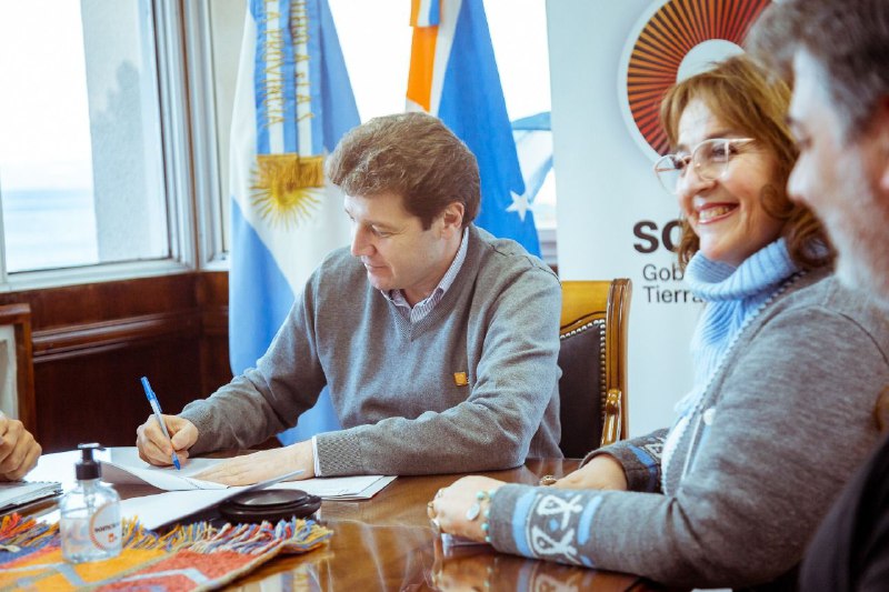 El Gobernador Gustavo Melella y la Secretaria de Integración Socio Urbana de Nación, Fernanda Miño; rubricaron un convenio para llevar adelante las obras de conexión de gas en el Barrio 11 de Noviembre de la ciudad de Ushuaia.