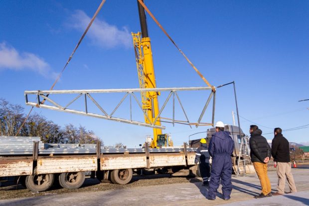 Finalmente el Jefe de Obra, Matías Cesari, explicó que este miércoles se posicionaron los anclajes del edificio y se descargó parte del material proveniente de Buenos Aires, además de los módulos que llegan pre armados a Tolhuin para empezar el montaje en secuencia del edificio.