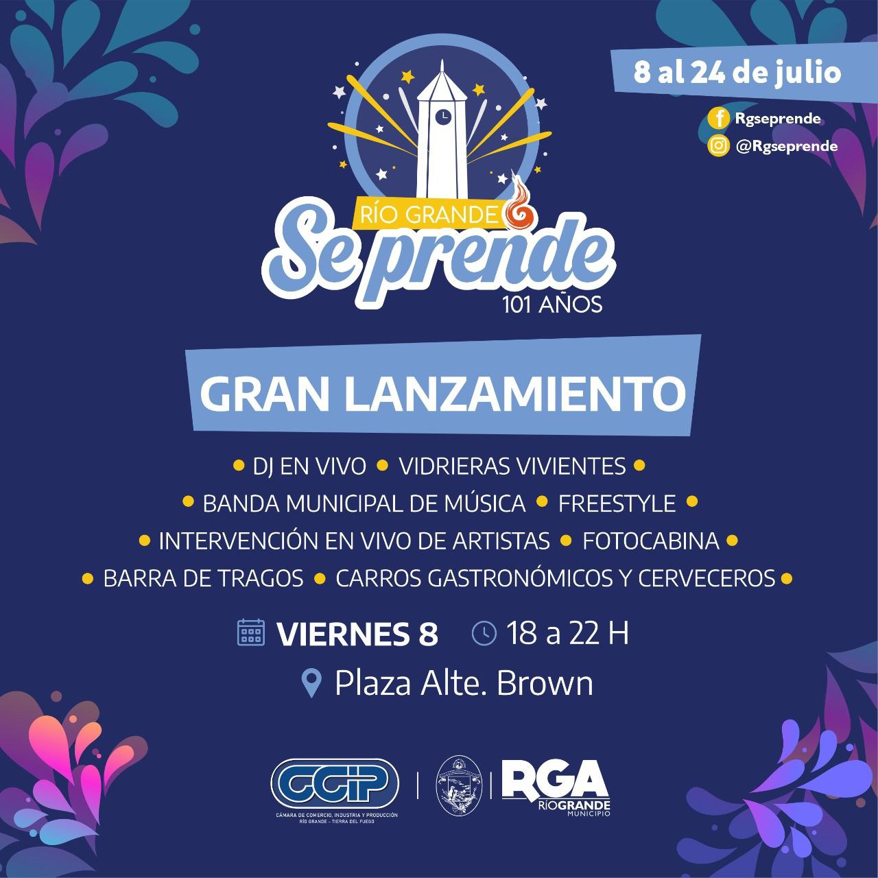 Finalmente, se recuerda que el viernes 8 de julio se realizará el lanzamiento de esta nueva edición del “Río Grande se Prende” en la plaza Alte. Brown. Habrá propuestas culturales y recreativas al aire libre, ofertas gastronómicas e intervenciones artísticas por toda la ciudad, desde las 18 hasta las 22 horas, para el disfrute de toda la familia.