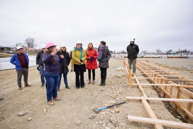 La ministra de Obras y Servicios Públicos, Gabriela Castillo junto a la comitiva nacional que visitó la provincia, encabezada por la subsecretaria de Obras Públicas de Nación María Cecilia Larivera y la directora Nacional de Transparencia del Ministerio de Obras Públicas, Roxana Mazzola, recorrieron la obra del Gimnasio Polideportivo Provincial de Tolhuin, ubicado en calles 1° de Mayo y Julio Argentino Roca.