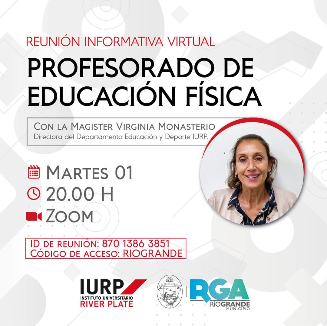 Se realizará una nueva reunión informativa sobre el Profesorado de Educación Física este martes 1° de noviembre a las 20 horas a través de la plataforma Zoom. Para participar deberán ingresar con el ID 870 1386 3851 y el código de acceso RIOGRANDE.