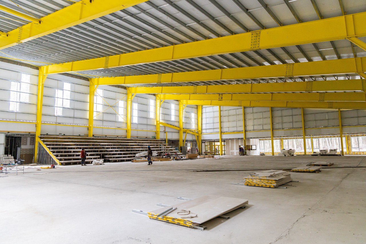 En el lugar se realizan tareas de colocación de pisos en los baños, tendido de cañerías de servicios, trabajos de cerramiento externo, emplacado de paredes y trabajos interiores en las salas de entrenamiento, entre otros. Además ya pueden verse las gradas las cuales serán completadas con sus butacas correspondientes, dispuestas para que 257 personas puedan ubicarse sentadas.
