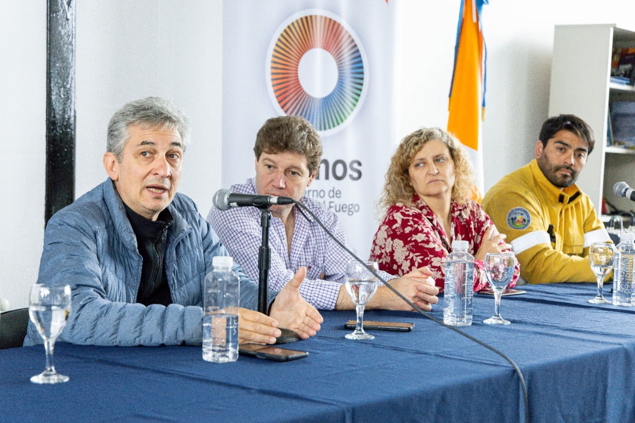 El Gobernador de Tierra del Fuego AIAS, Gustavo Melella, brindó junto al viceministro de Ambiente de Nación, Sergio Federovisky, a la Ministra de Producción y Ambiente, Sonia Castiglione y al equipo del Sistema de Manejo del Fuego una conferencia de prensa donde luego de sobrevolar el territorio se brindaron detalles de la situación actual del ígneo en la Reserva Corazón de la Isla.