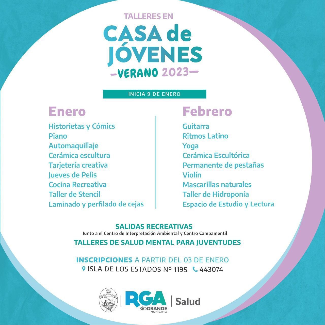 El Municipio de Río Grande informa a la comunidad que este lunes 3 de enero comienzan las inscripciones presenciales, en Isla de los Estados 1195, para participar de la propuesta de verano de Casa de Jóvenes.