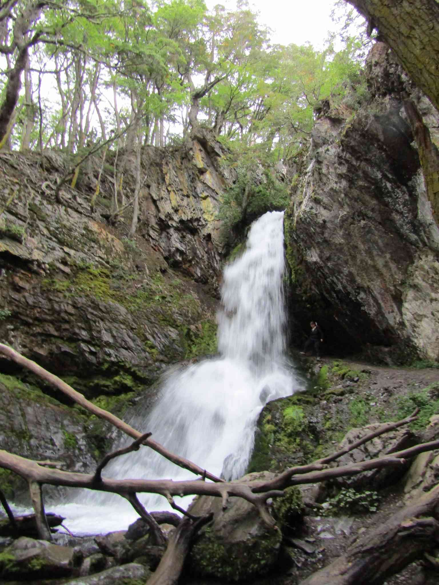 Abajo la Cascada Velo de la Novia, en el ingreso a Ushuaia, sobre la Ruta 3 y Sendero a cascada 5 Hermanos, rodeadas de un bosque maravilloso, con acceso de mediana dificultad, merecen ser visitadas por su belleza y entorno mágico. la caminata no se extiende por mas de 45 minutos. Lugar muy recomendable para pasar un día realmente alejado del ruido y la rutina