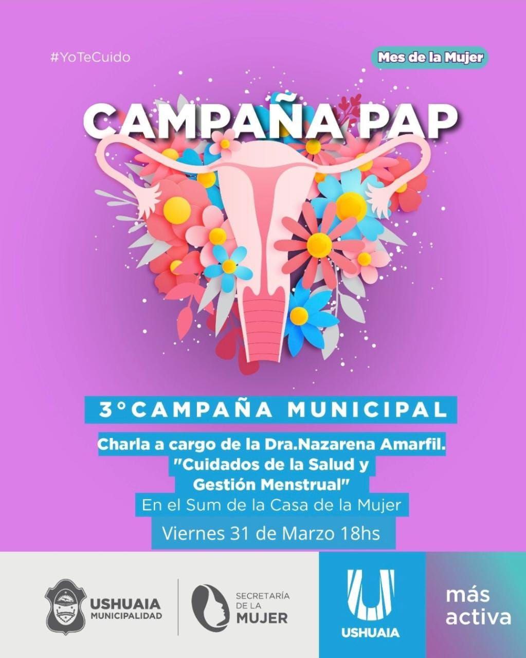 Ushuaia 29/03/2023.- La Secretaría de la Mujer de la Municipalidad de Ushuaia llevará adelante una charla sobre “Cuidados de la Salud y Gestión Menstrual”, que estará a cargo de la doctora Nazarena Amarfil.