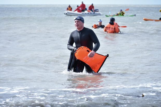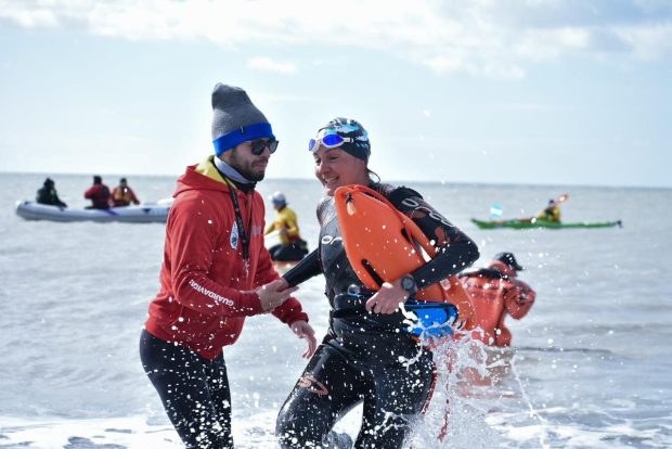 Luego de esto, también se llevó adelante la Travesía Acuática con la presencia de cuarenta nadadores de aguas frías, quienes unieron el Club Naútico Ioshlelk Oten con el Monumento donde se encuentra emplazada la Carpa de la Dignidad.