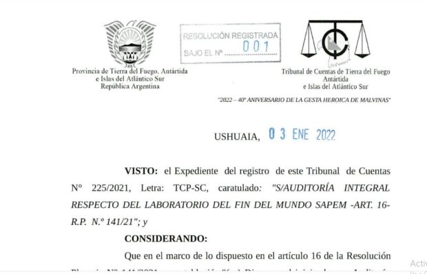 Según los documentos con que contamos en nuestro poder, recién el 3 de enero de 2022 el TCP dio inicio al expediente de la Auditoria integral respecto del Laboratorio del Fin del Mundo. habían pasado 3 años desde que el tema de los medicamentos se convirtió en un escandalo.