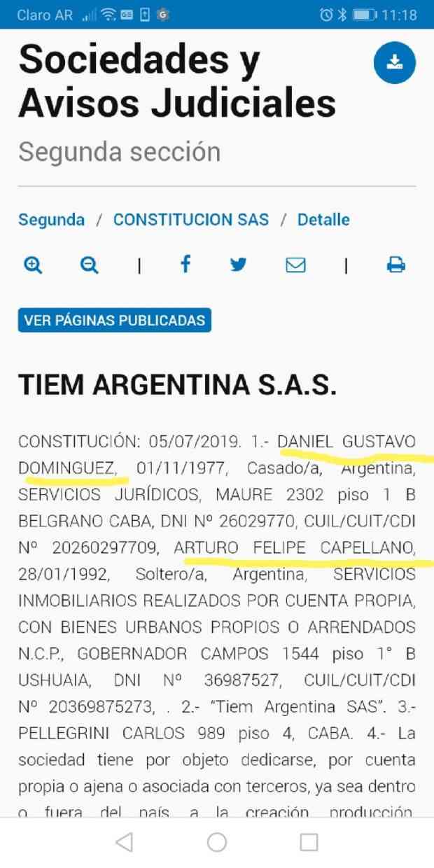 Por su parte Gustavo Dominguez ha conformado una empresa con el antes mencionado Capelano en CABA  cuyo nombre es TIEM ARGENTINA S:A:S. de servicios jurídicos.