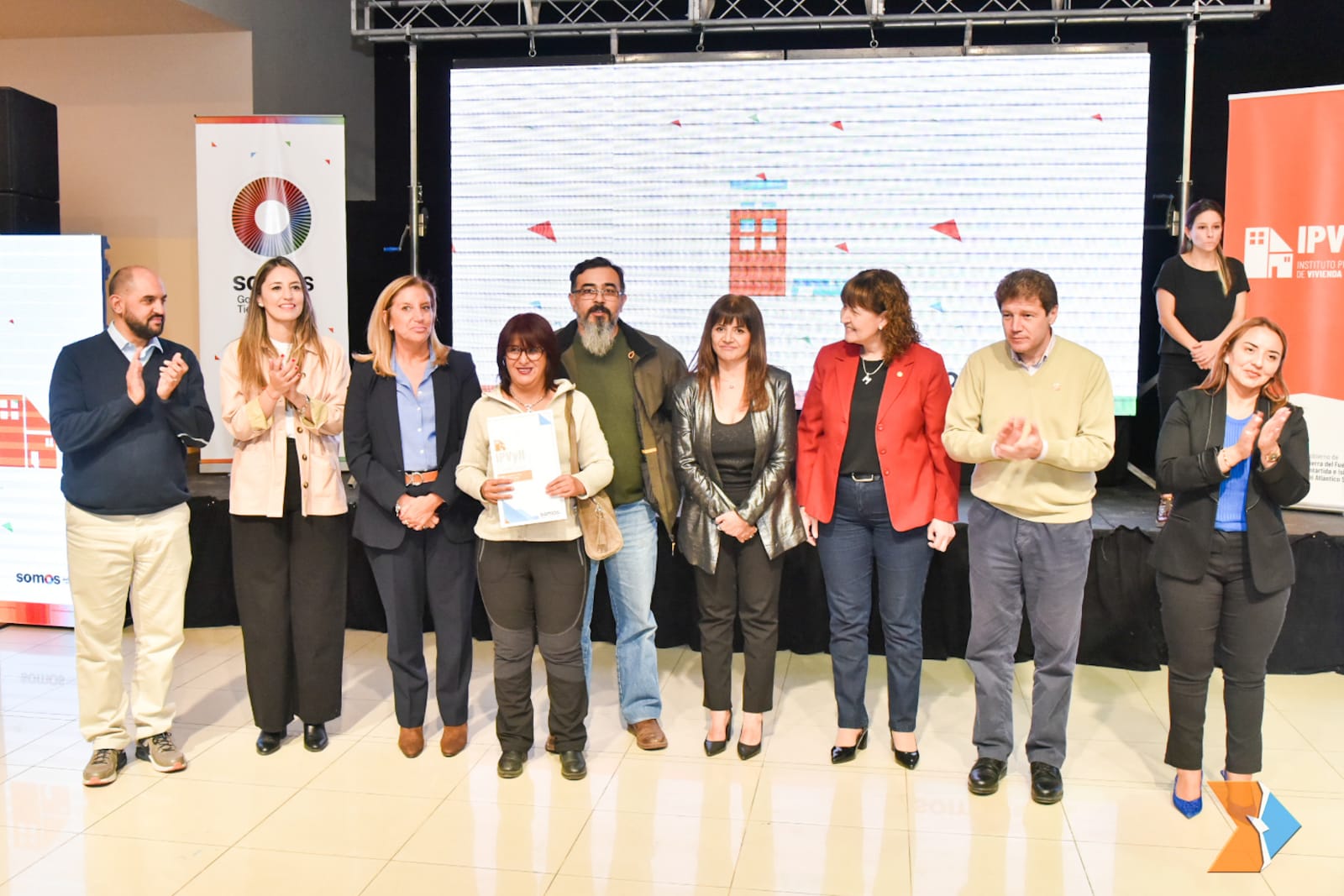 La titular del IPVyH, arq. Laura Montes, agradeció al Gobernador de la Provincia las diversas gestiones encaradas con el propósito de “la regularización dominial”; asimismo informó diversas tareas en la zona de la margen sur del río Grande con la entrega de “tenencia precaria”. Dentro de las tareas, “más allá de la ejecución de viviendas y la regularización de tierras”, la funcionaria mencionó que se trabaja con el área de Tierras, Legal y notarial “para poder entregar escrituras con hipoteca a las viviendas que ya han sido cedidas y que son de propiedad horizontal”, sostuvo frente a las familias que accedieron a ese documento.