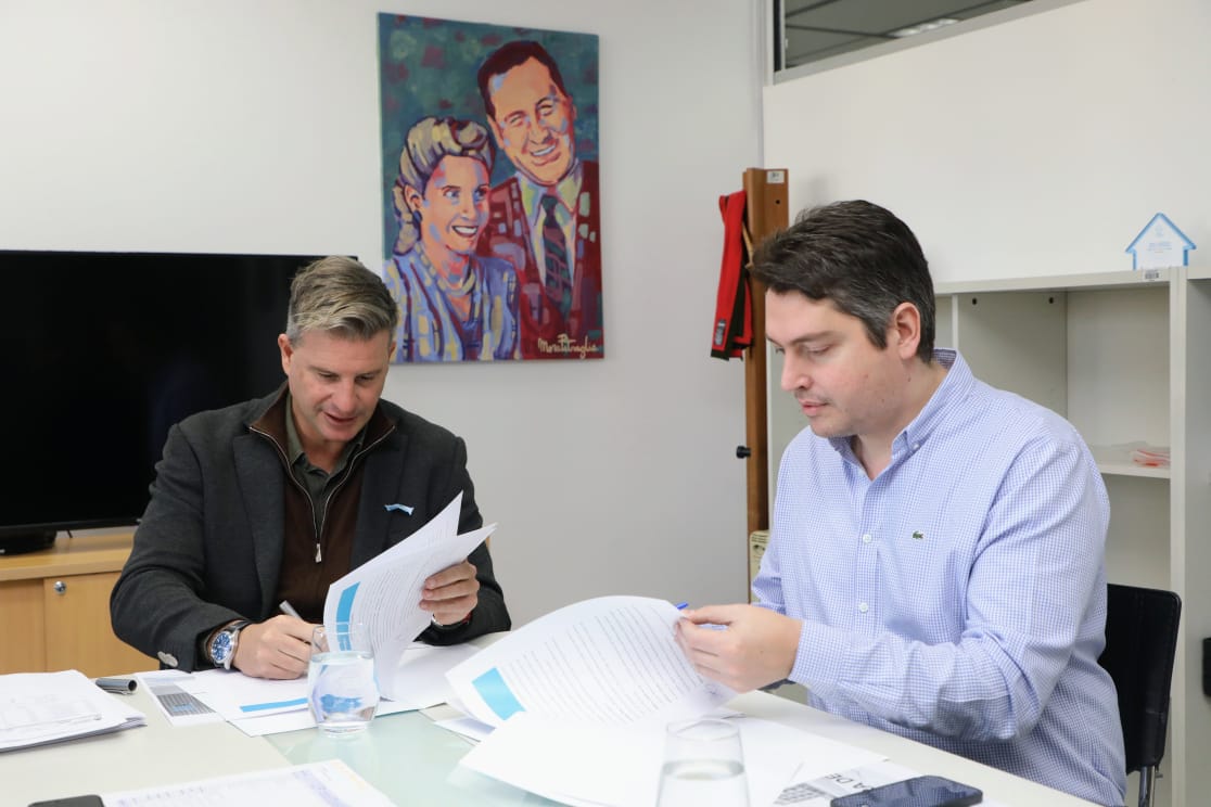 El intendente Martín Perez firmó, junto al secretario de Desarrollo Territorial del Ministerio de Desarrollo Territorial y Hábitat de la Nación, Luciano Scatolini, el acta de entrega de posesión de la obra para la construcción de 180 viviendas mediante el primer Desarrollo Urbanístico Procrear II en nuestra ciudad.