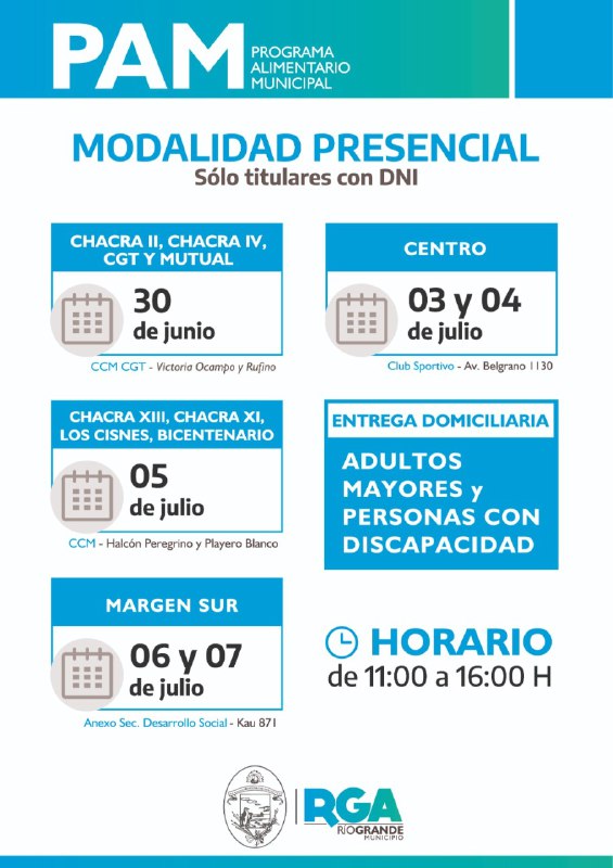 Rio Grande 29/06/2023.- Está dirigida a quienes estén empadronados en el Programa Alimentario Municipal. La distribución será de manera presencial desde este viernes 30 de junio. Para adultos mayores y personas con discapacidad la entrega será domiciliaria.