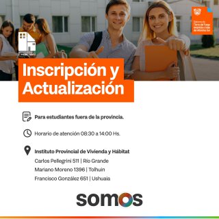 Rio Grande 04/07/2023.- El Instituto Provincial de Vivienda y Hábitat comunica que se encuentran habilitado el período de inscripción y actualización de legajos para estudiantes que se encuentren cursando fuera de la provincia.