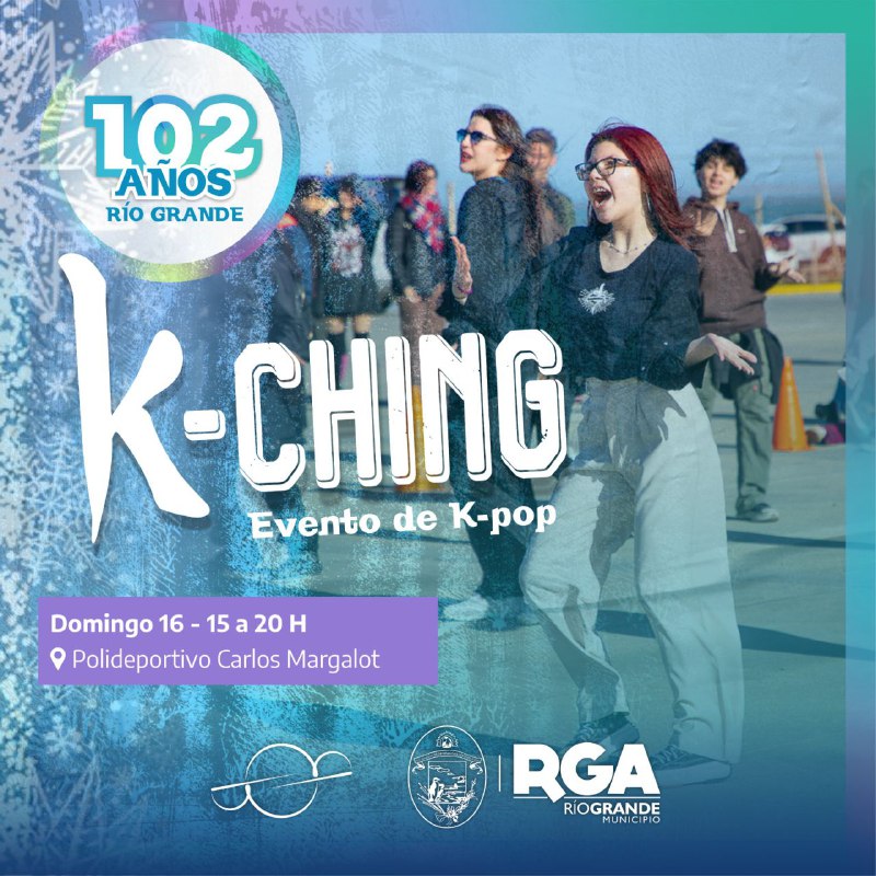 “K-Ching” es un evento de kpop enmarcado en la agenda de festejos por el 102° aniversario de Río Grande. La 6° edición de esta propuesta está dirigida a las juventudes con el fin de que cuenten con espacios de recreación y socialización. La actividad está organizada por el Municipio junto con “B&B”, grupo pionero de kpop en Río Grande.