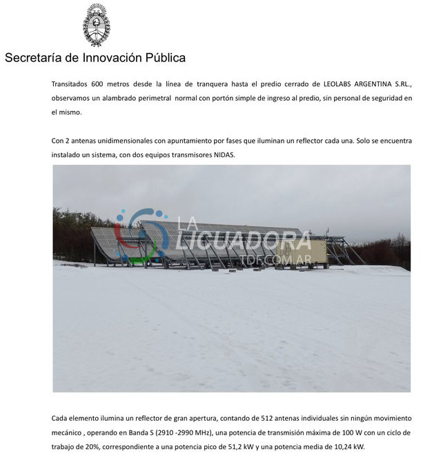 Aquella autorización le permitía a la empresa LeoLabs, de capitales norteamericanos y de Gran Bretaña, instalar una «estación terrena en Banda S» en Ushuaia. Pero ahora, con el informe técnico en mano se ordenó la «cancelación definitiva» del proyecto.