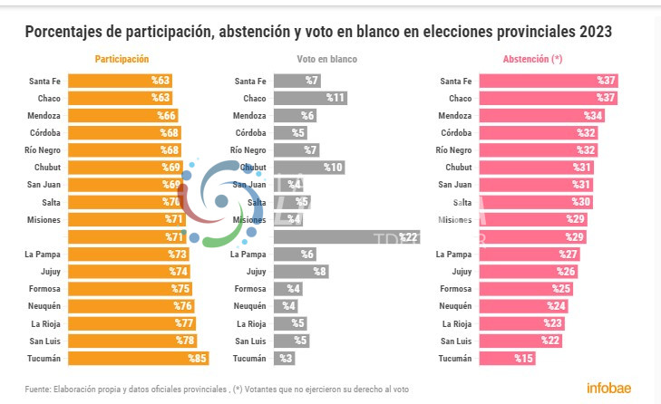 La unidad de datos de Infobae recopiló los datos de participación electoral y voto en blanco en las 17 provincias en las que hubo elecciones en 2023.