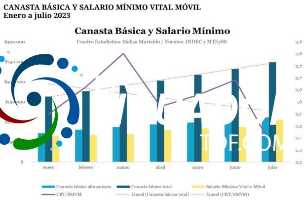 Este dato es el resultado del último informe realizado por el Instituto Nacional de Estadística y Censos (INDEC), el cual mostró que la Canasta Básica Total (CBT), que se calcula a partir de la CBA e incluye bienes y servicios no alimentarios – vestimenta, transporte, educación, salud-, aumentó 7,1% en julio y quedó por encima de la inflación (6,3%). En detalle, tuvo un incremento de 52,4% en el primer semestre de este año (a junio), contra 50% del IPC en este mismo periodo, mientras que en los últimos 12 meses (a julio) el alza fue de un 123% contra 115,6%.