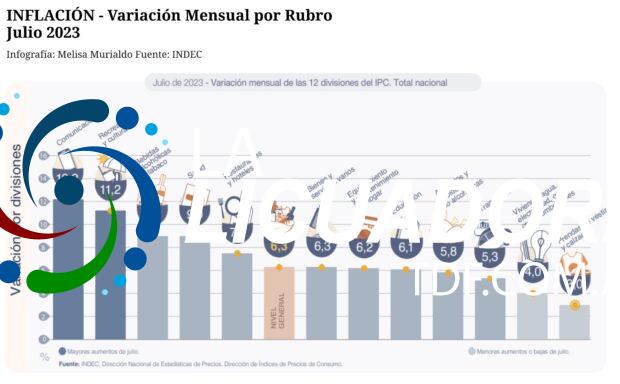 Como se mencionó anteriormente, el Nivel general del Índice de precios al consumidor (IPC) registró un alza mensual de 6,3% en julio de 2023, y acumuló una variación de 60,2%. En la comparación interanual, el incremento alcanzó el 113,4%. A pesar de que el rubro Alimentos y Bebidas Alcohólicas (5,8%) sufrió una variación menor a la de la inflación, es la división de mayor incidencia en todas las regiones del país.
