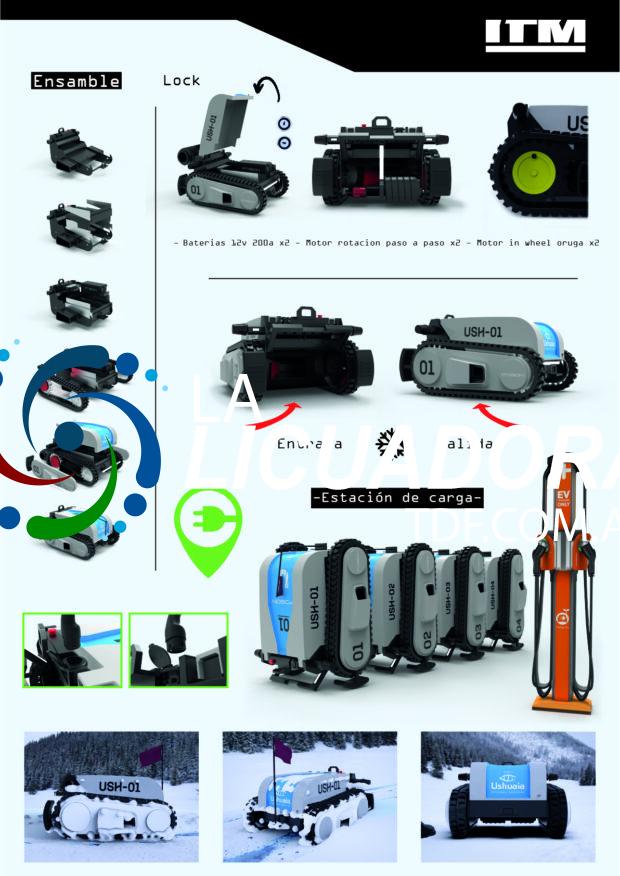 En el caso de Felipe Isoba, cuando llegamos al práctico que se ocupa de vehículos Emisión Cero–Autónomos–De Servicio, encontró su oportunidad. Identificó un problema de su ciudad: nieve en las calles y en veredas; y cómo una máquina autónoma y portátil podría resolver esto. Se puso con el tema y decidió algo más. Su proyecto serviría, además de cumplir el cometido de aprobar el tercer práctico del último año, para ser desarrollado en forma más profunda y extensa, trabajando con su tecnología de producción, la cadena cinemática de movimiento, y el accionamiento del útil; así como el mantenimiento y preservación de su autonomía.
