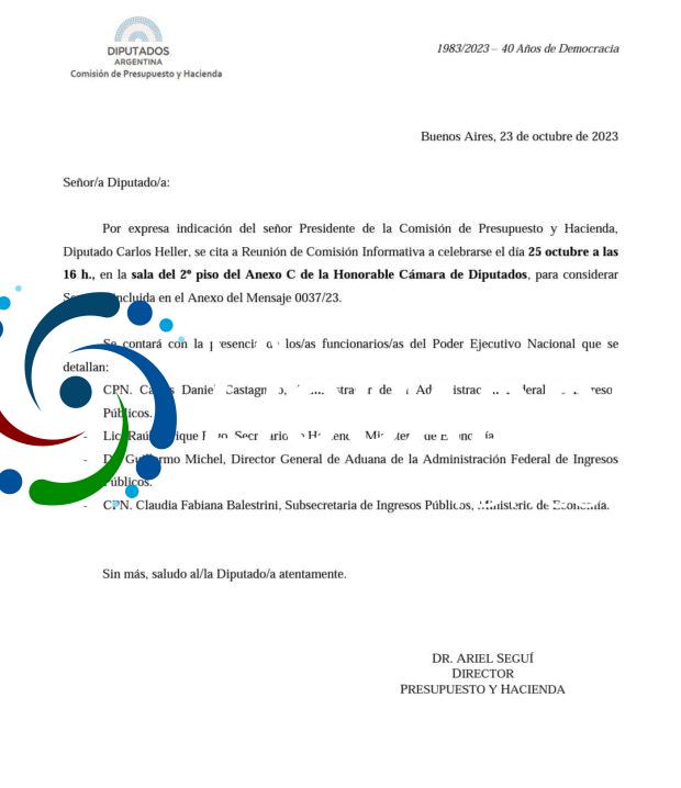 Nota convocando a la Reunión de comisión de presupuesto de la Cámara de Diputados de la Nación.