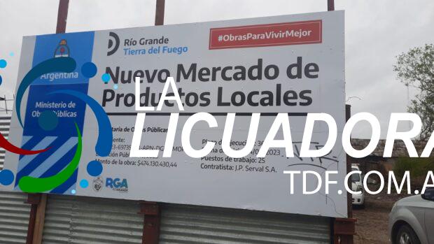 Cártel de Obra del nuevo mercado de productores locales en Rio Grande.