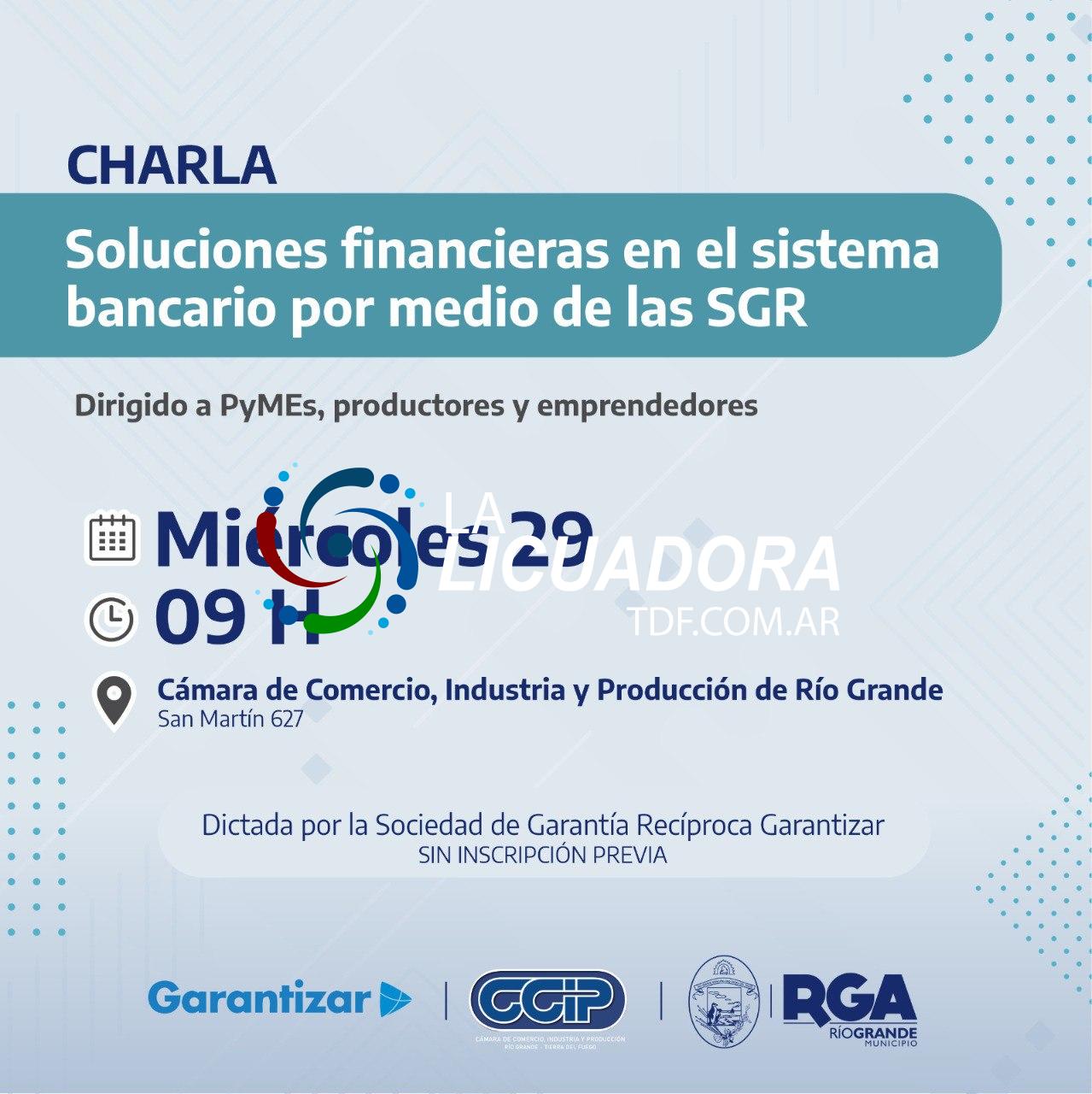 El Municipio de Río Grande, junto a la Cámara de Comercio de la ciudad, realizará una charla sobre “Soluciones financieras en el sistema bancario por medio de las SGR”. La misma será dictada por la Sociedad de Garantía Recíproca «Garantizar» y está dirigida a PyMEs, productores y emprendedores.