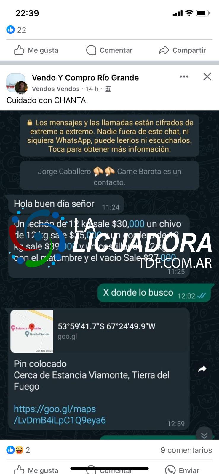 Esto fue denunciado por la Asociación Rural de Tierra del Fuego que en un comunicado informó que no están vendiendo corderos al publico, por lo que se supone que los animales que se vendían en redes eran producto de abigeato.