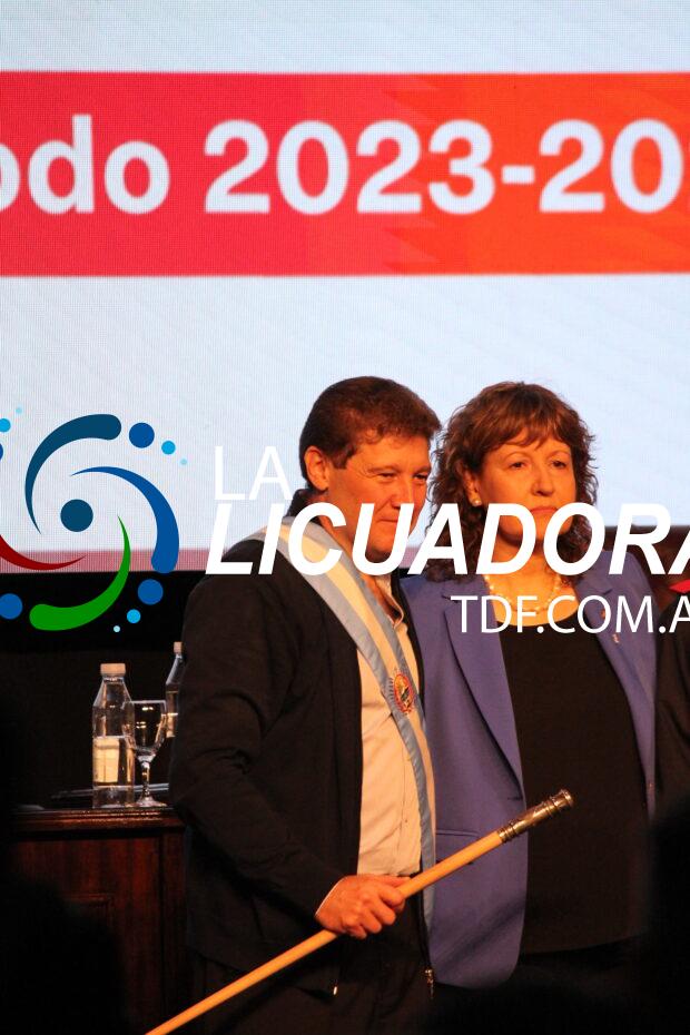 Luego de la jura, la Vicegobernadora acompañada de Legisladores y Legisladoras colocaron la banda al Gobernador y ciudadanos y ciudadanas en representación del pueblo fueguino le entregaron el bastón de mando.