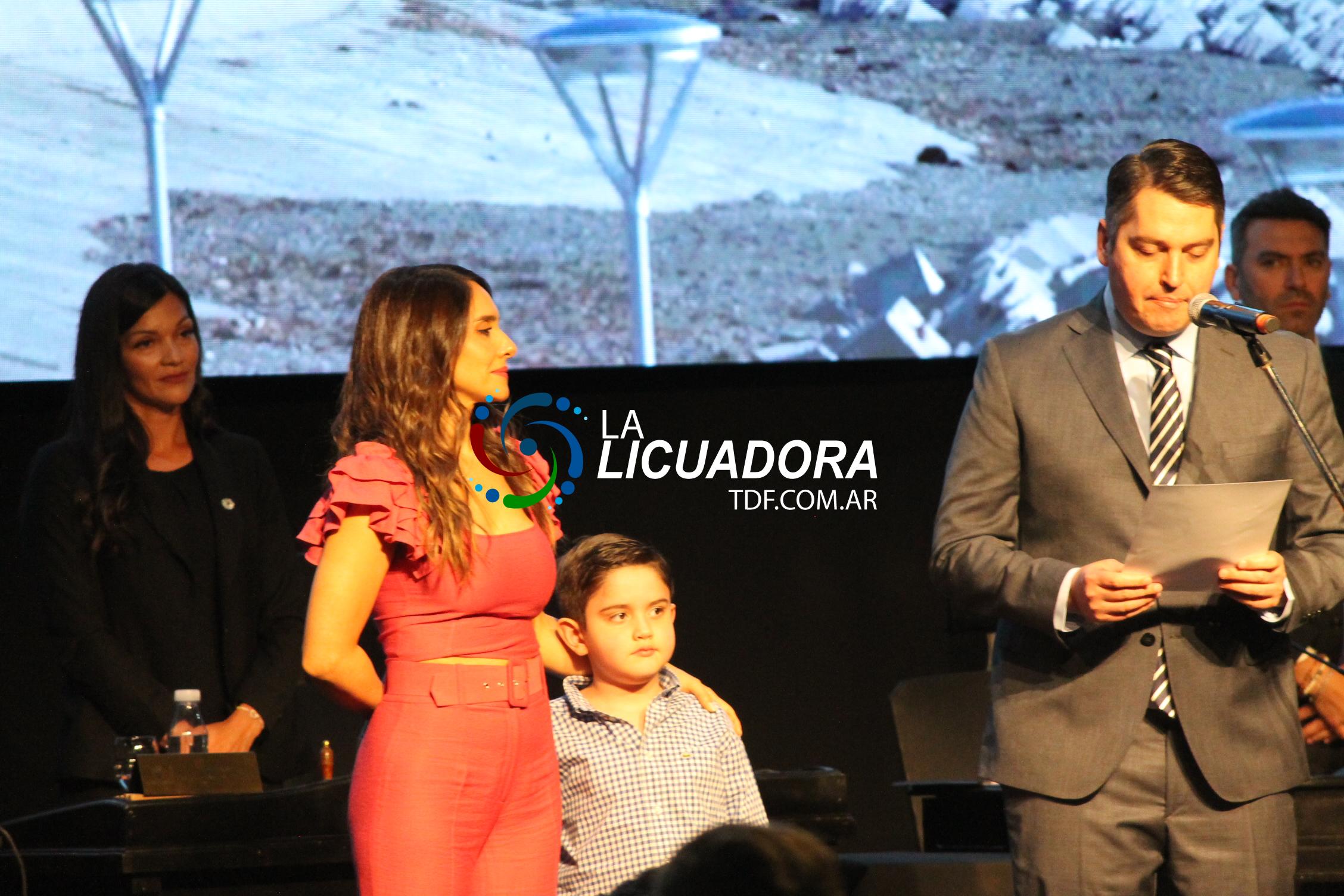 Rio Grande 14/12/2023.- En un acto llevado a cabo en la tarde de hoy en un colmado Gimnasio del Colegio Don Bosco, juró el Intendente Martin Pérez, por un nuevo periodo al frente del Municipio de esta ciudad. El Jefe comunal estuvo acompañado por su esposa e hijo, el Intendente de Tolhuín, Daniel Harrington, legisladores provinciales, funcionarios, concejales y gran cantidad de publico que colmó las instalaciones. Malestar por la reforma de la constitución provincial e incertidumbre sobre la continuidad de obras que están en ejecución