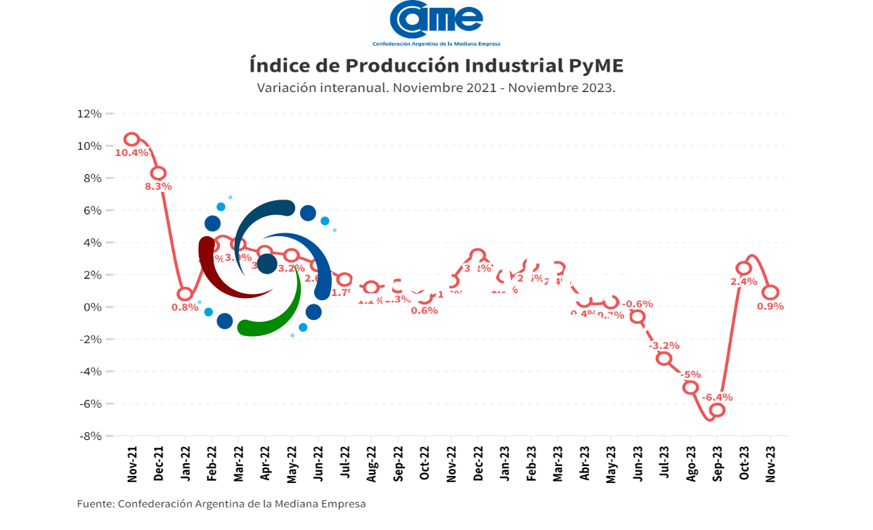 Estos resultados surgen del Índice de Producción Industrial Pyme (IPIP) que elabora la CAME, con una muestra que alcanzó a 413 industrias pyme a nivel federal.