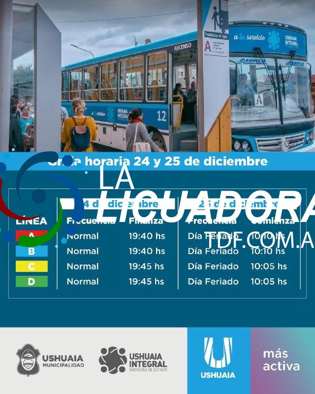 Ushuaia 23/12/2023.- La Municipalidad de Ushuaia informa a la comunidad que el Transporte Público de Colectivos, a cargo de Ushuaia Integral Sociedad del Estado (UISE), tendrá horario reducido durante las tradicionales Fiestas Navideñas y de Año Nuevo.